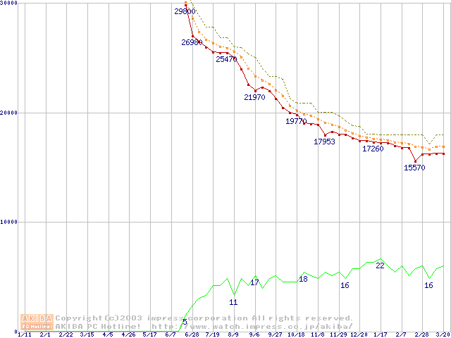 DiamondMax Plus 9 (7200rpm,8MB,SerialATA/150,FDB)の最安値推移