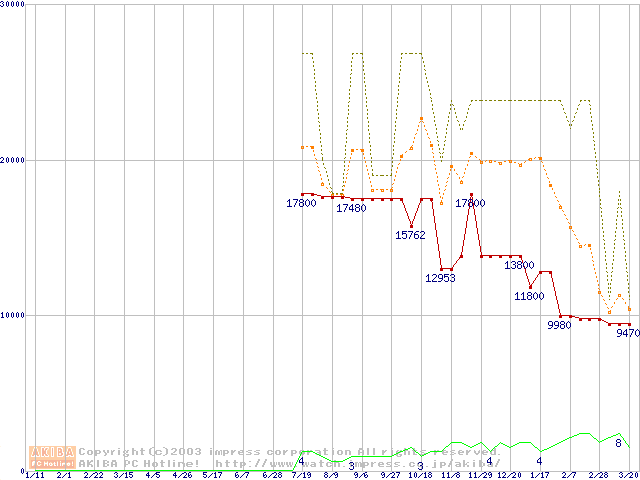 PC3700(DDR466) DDR SDRAM DIMMの最安値推移