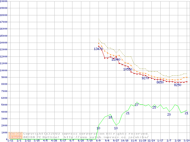 Deskstar 7K250 (7200rpm,UltraATA/100,FDB)の最安値推移