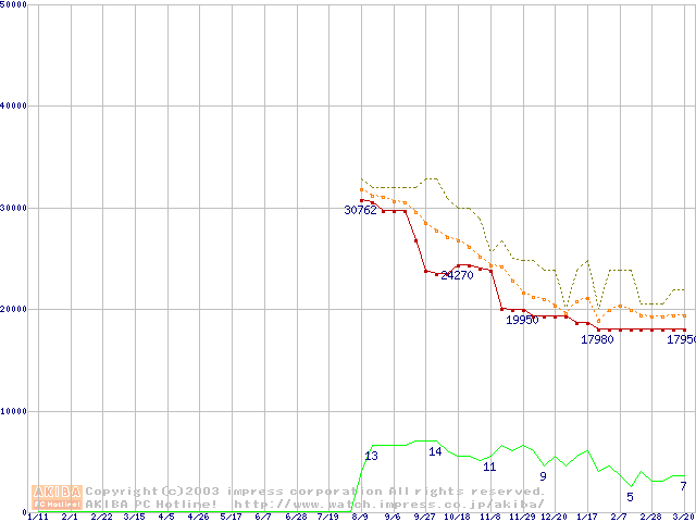 Opteron 140(1.4GHz) リテールパッケージの価格推移