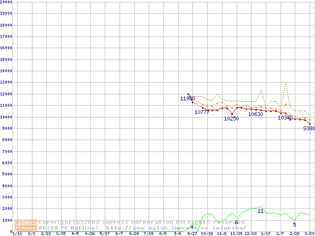 Socket A (OPGA,FSB 333MHz,L2 512KB,Barton)の最安値推移