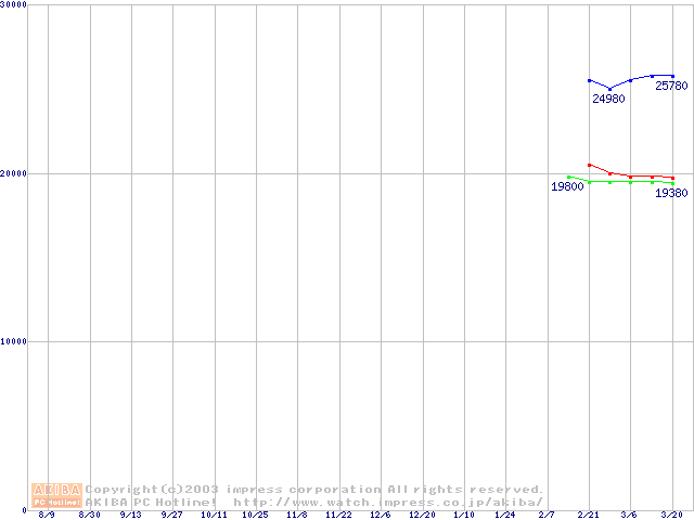 | [↓次グラフ]: | Socket 478 (micro-PGA,FSB 800MHz,L2 512KB,Hyper-Threading,Northwood)の最安値推移 |