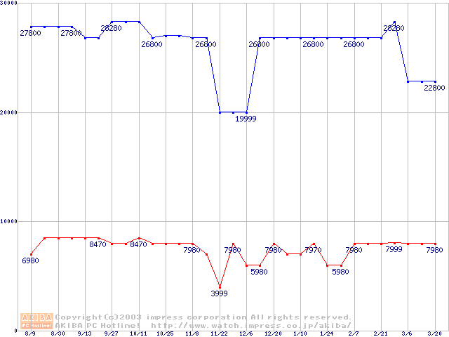 | [↑前グラフ]: | PC1066 DRDRAM RIMMの最安値推移 |