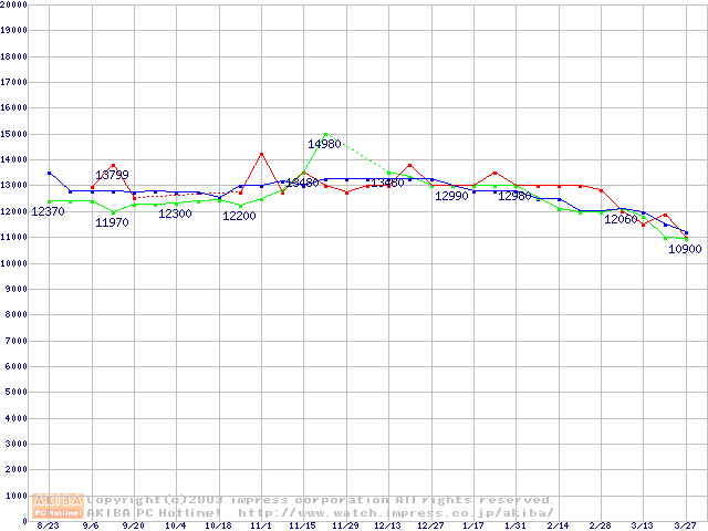 | [↑前グラフ]: | 2.5インチHDD 20GB~40GB未満(9.5mm厚)の最安値推移 |