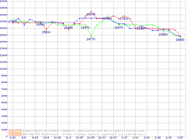 | [↓次グラフ]: | 2.5インチHDD 60GB~80GB未満(9.5mm厚,5400rpm)の最安値推移 |