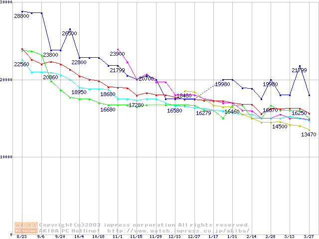 HDD 250GB以上の最安値推移