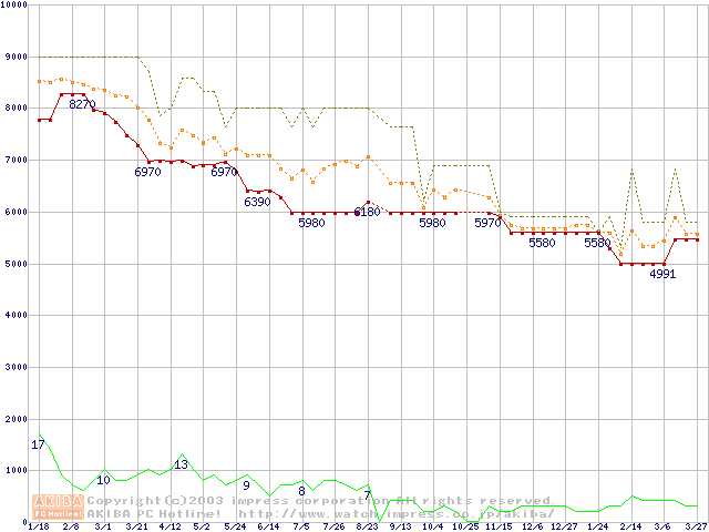 WD Protege (5400rpm,UltraATA/100)の最安値推移