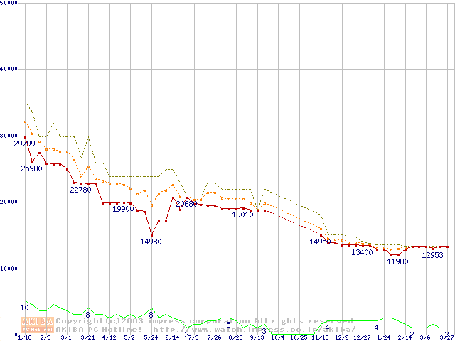 WD Caviar (7200rpm,UltraATA/100,2MB)の最安値推移
