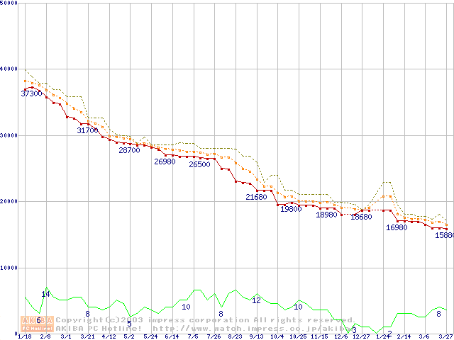 2.5インチHDD主要製品の最安値推移