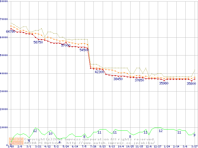 Xeon 2.80GHz(FSB533) リテールパッケージの価格推移