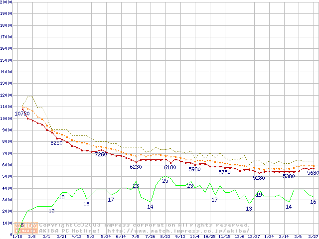 Barracuda 7200.7 (7200rpm,UltraATA/100,2MB,80GB/Platter,FDB)の最安値推移