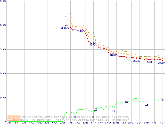 MaXLine II (5400rpm,UltraATA/133,2MB,80GB/Platter,BB)の最安値推移