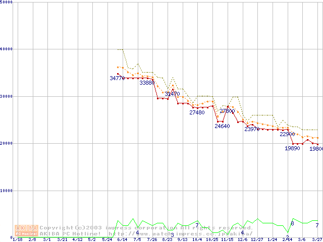 Athlon MP 2800+ (2.13GHz) リテールパッケージの価格推移