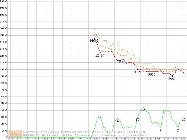 Deskstar 7K250 (7200rpm,UltraATA/100,FDB)の最安値推移