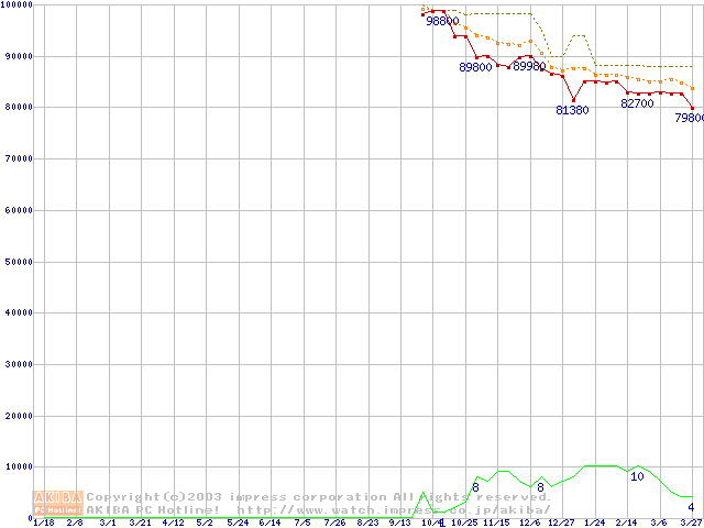 Athlon 64 FX-51(2.2GHz) リテールパッケージの価格推移