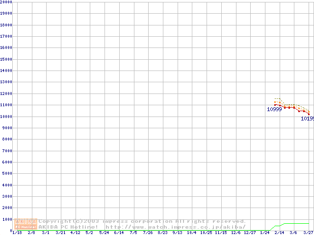 MHT20x0ATシリーズ (9.5mm,4200rpm,UltraATA/100,2MB,FDB,40GB/Platter,FDB)の最安値推移
