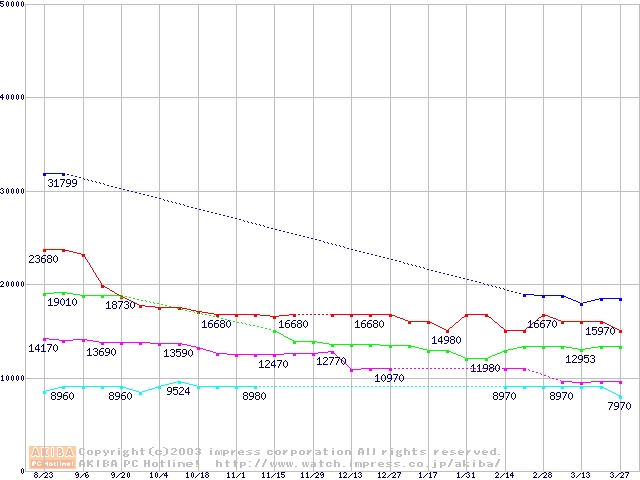 | [↓次グラフ]: | WD Protege (5400rpm,UltraATA/100)の最安値推移 |