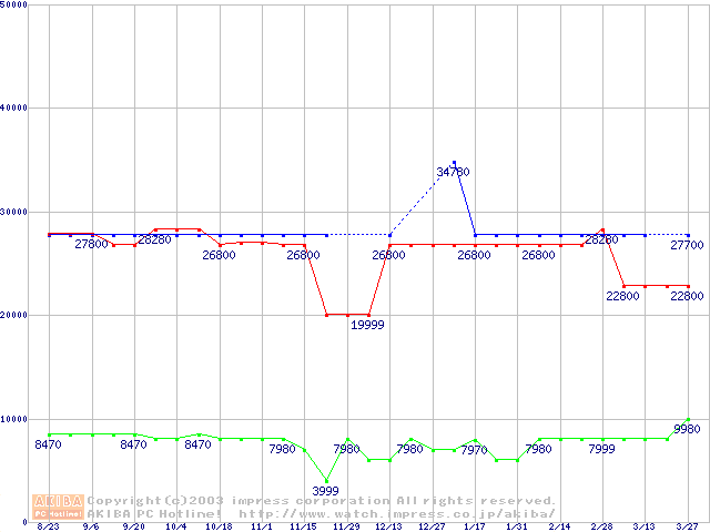 | [↓次グラフ]: | Socket 478 (micro-PGA,FSB 800MHz,L2 512KB,L3 2MB,Hyper-Threading,Gallatin)の最安値推移 |
