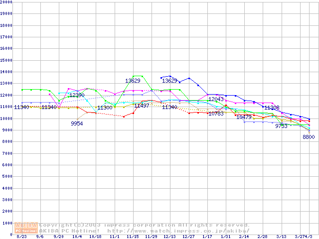 | [↑前グラフ]: | 2.5インチHDD主要製品の最安値推移 |