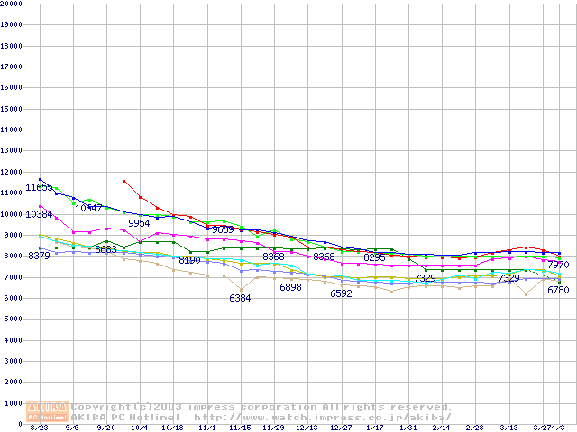 HDD 30GB~80GB未満の最安値推移