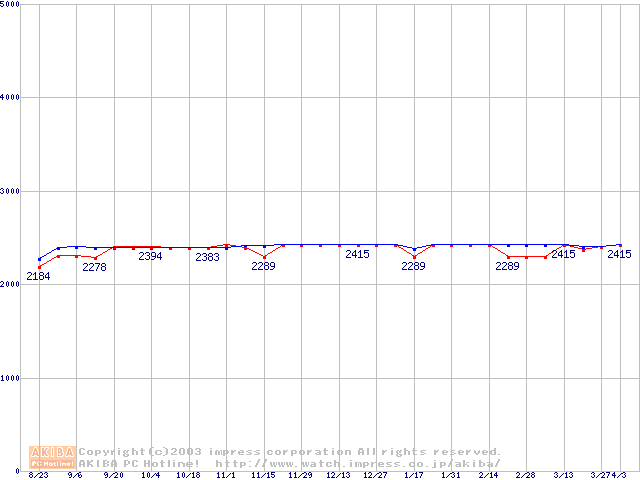256MBモジュールの最安値推移