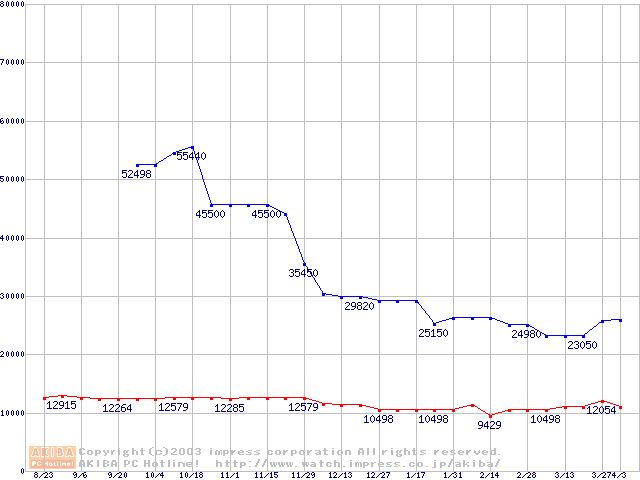 メモリ主要製品の最安値推移