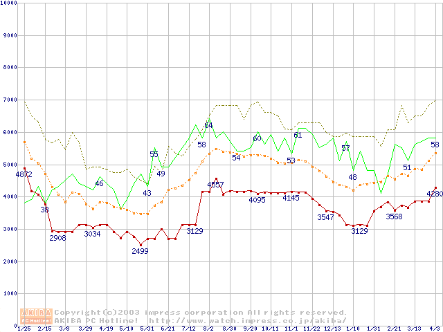 | PC2700 DDR SDRAM 256MB(CL2.5)の価格推移(税込み相当額) |