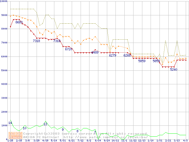 | WD Protege WD400EB (40GB)の価格推移(税込み相当額) |