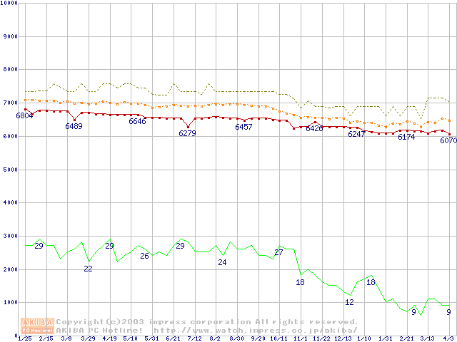 | Celeron 1.70GHz リテールパッケージの価格推移(税込み相当額) |