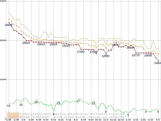 MKシリーズ (9.5mm,4200rpm,2MB,FDB,30GB/Platter)の最安値推移