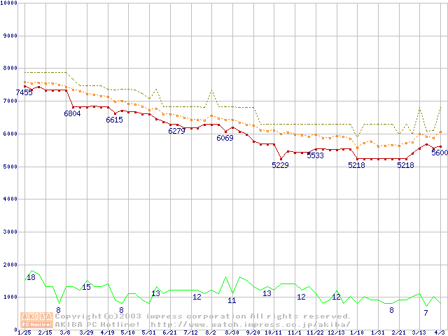 | U Series X ST320014A (20GB)の価格推移(税込み相当額) |