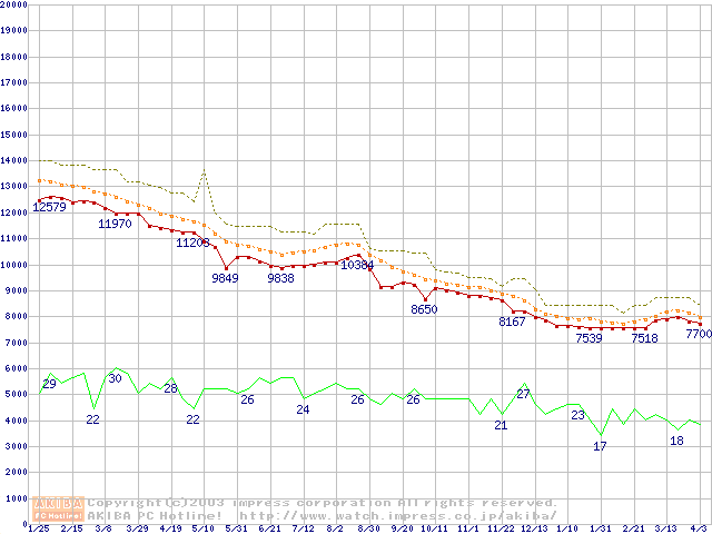| DiamondMax Plus 9 6Y080P0 (80GB)の価格推移(税込み相当額) |