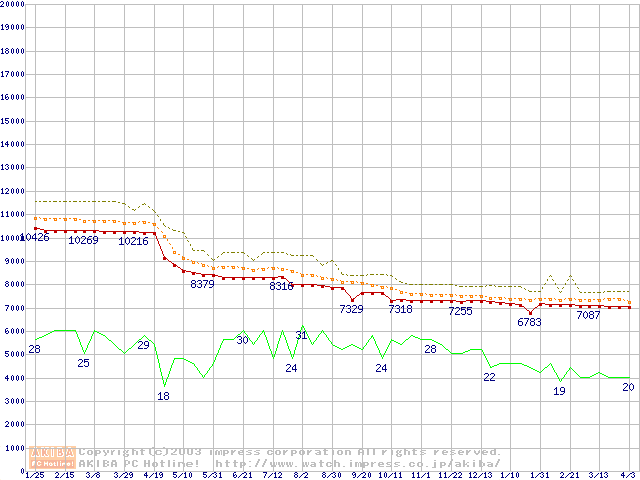 | Celeron 2GHz リテールパッケージの価格推移(税込み相当額) |