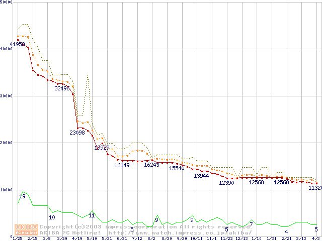 | Athlon XP 2700+ (2.17GHz) バルクの価格推移(税込み相当額) |