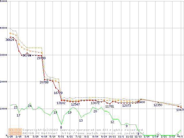 | Athlon XP 2600+ (2.08GHz) リテールパッケージの価格推移(税込み相当額) |