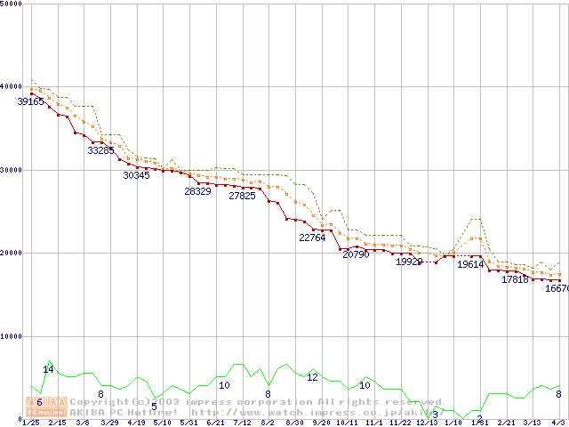 2.5インチHDD主要製品の最安値推移