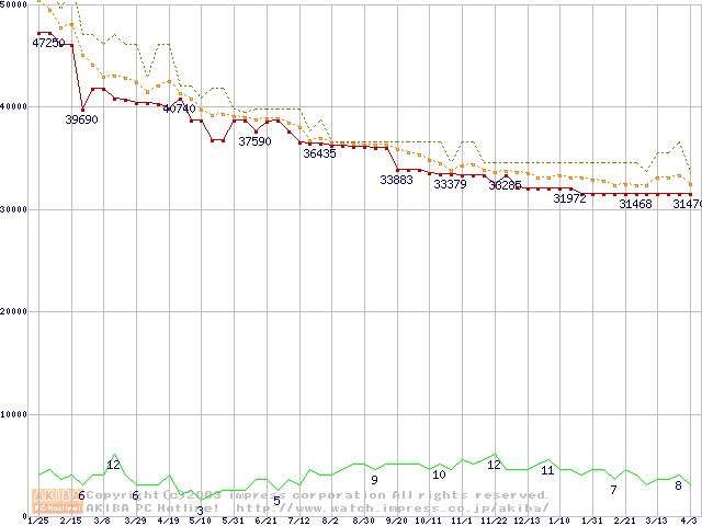 | Xeon 2.66GHz(FSB533) リテールパッケージの価格推移(税込み相当額) |