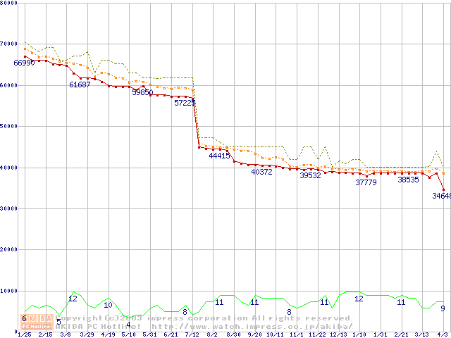 | Xeon 2.80GHz(FSB533) リテールパッケージの価格推移(税込み相当額) |