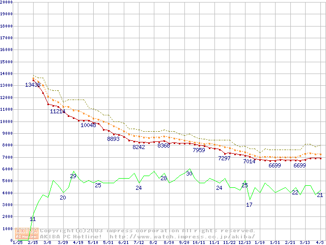 | Barracuda 7200.7 ST380011A (80GB)の価格推移(税込み相当額) |