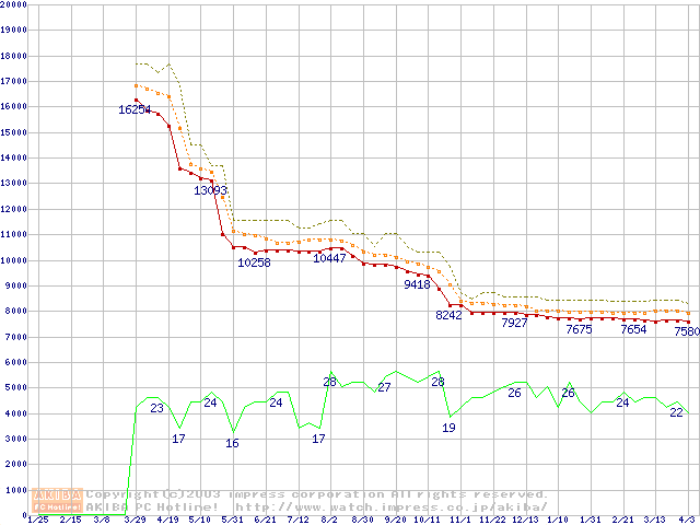 | Celeron 2.40GHz リテールパッケージの価格推移(税込み相当額) |