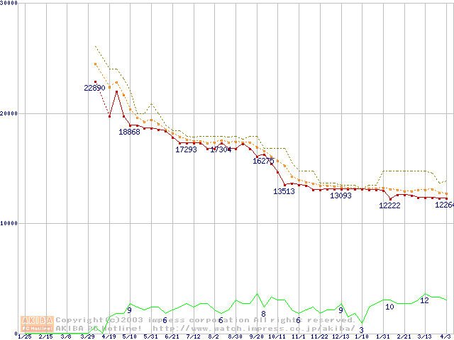 | WD Raptor WD360GD (36.7GB)の価格推移(税込み相当額) |