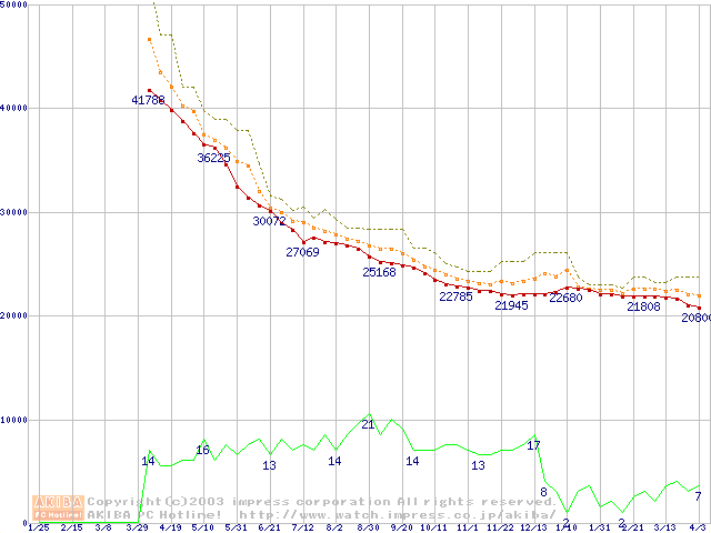 | Travelstar 80GN IC25N080ATMR04 (80GB)の価格推移(税込み相当額) |