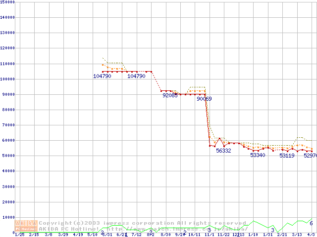 | Opteron 244(1.8GHz) リテールパッケージの価格推移(税込み相当額) |