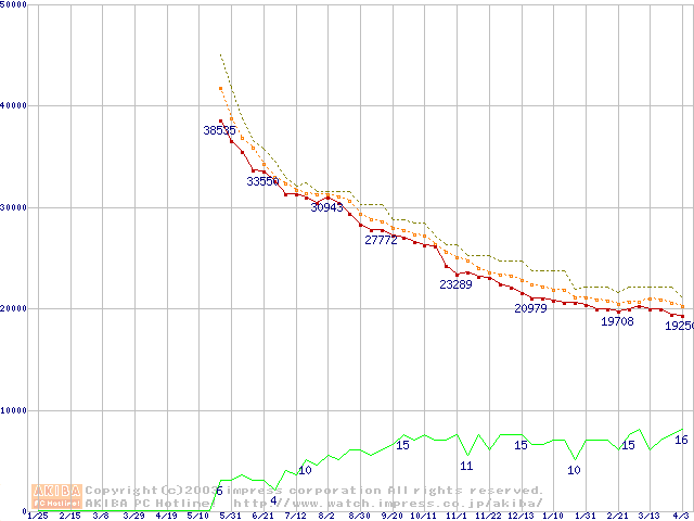 | MaXLine II 5A250J0 (250GB)の価格推移(税込み相当額) |