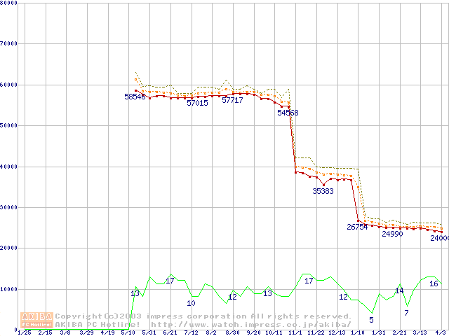 | Athlon XP 3200+ (2.2GHz) リテールパッケージの価格推移(税込み相当額) |