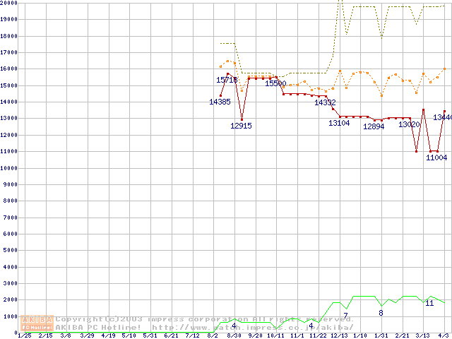 | PC3200 DDR SDRAM 512MB(CL3) ECC Registeredの価格推移(税込み相当額) |