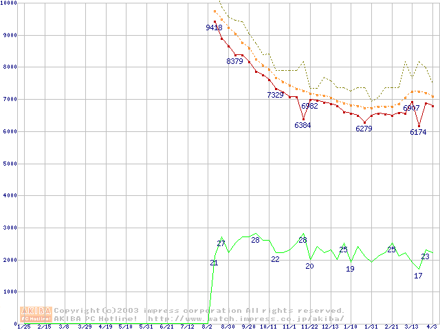 | Deskstar 7K250 HDS722580VLAT20 (80GB,2MB)の価格推移(税込み相当額) |
