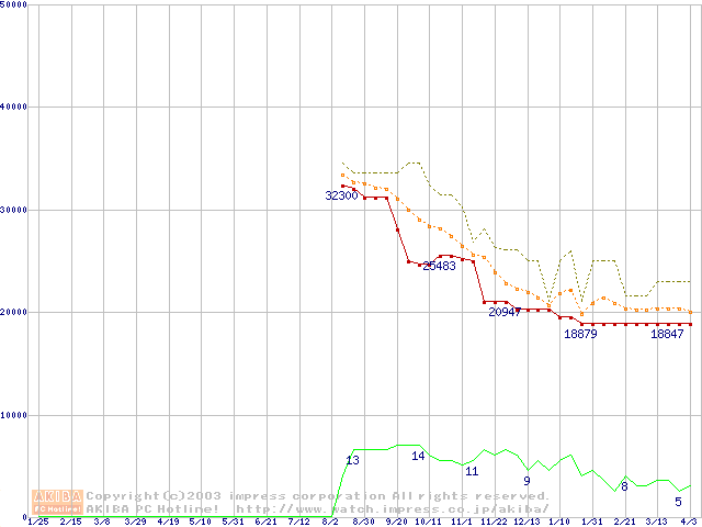 | Opteron 140(1.4GHz) リテールパッケージの価格推移(税込み相当額) |