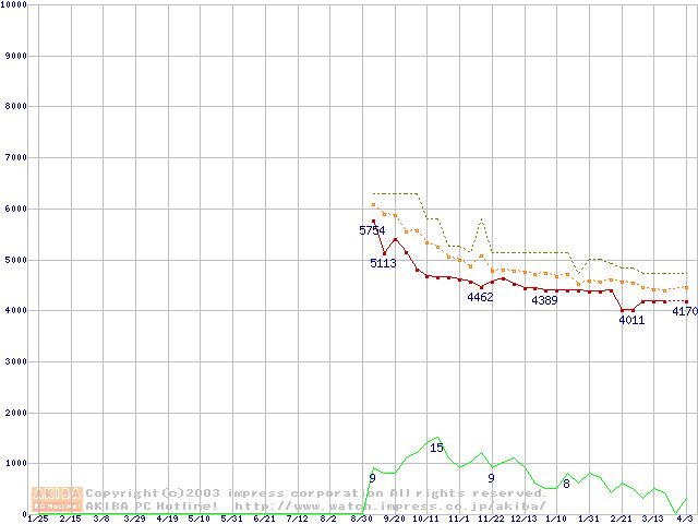 Socket A (OPGA,FSB 266MHz,L2 64KB,Applebred)の最安値推移