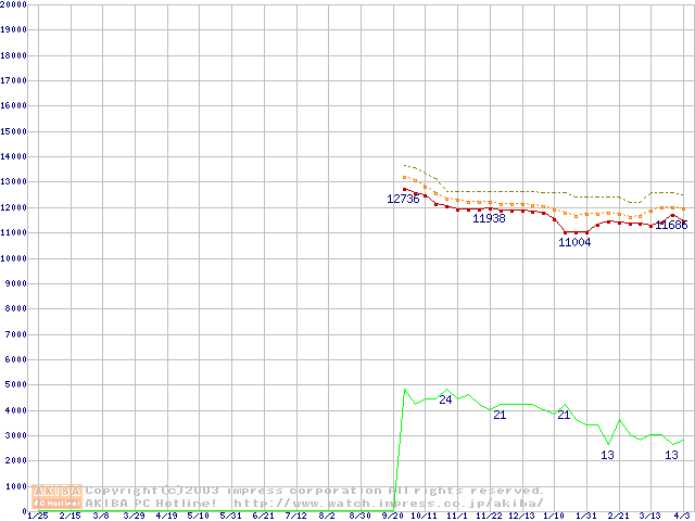 | Celeron 2.70GHz リテールパッケージの価格推移(税込み相当額) |